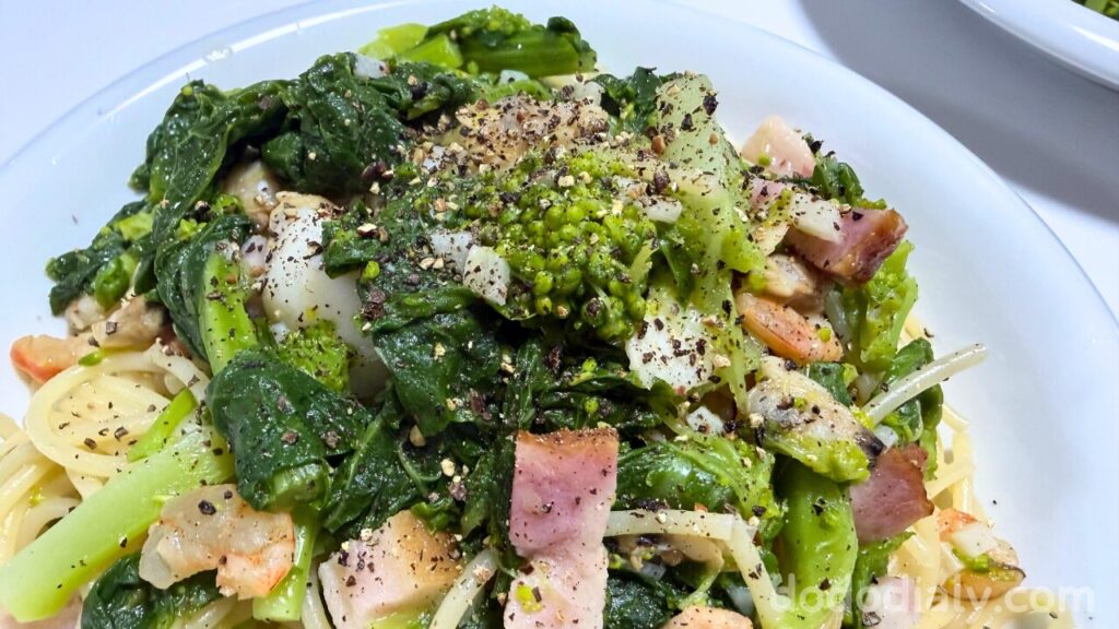 冬と春のいいとこどり!菜の花のパスタ/水菜の煮浸し/シロナの味噌汁