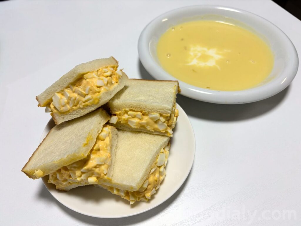 たまごサンドが急に食べたくなった旦那氏が、私の分も作ってくれました。