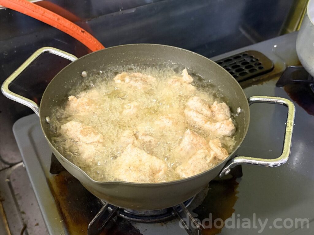 小さな揚鍋でじゃぶじゃぶ揚げます。