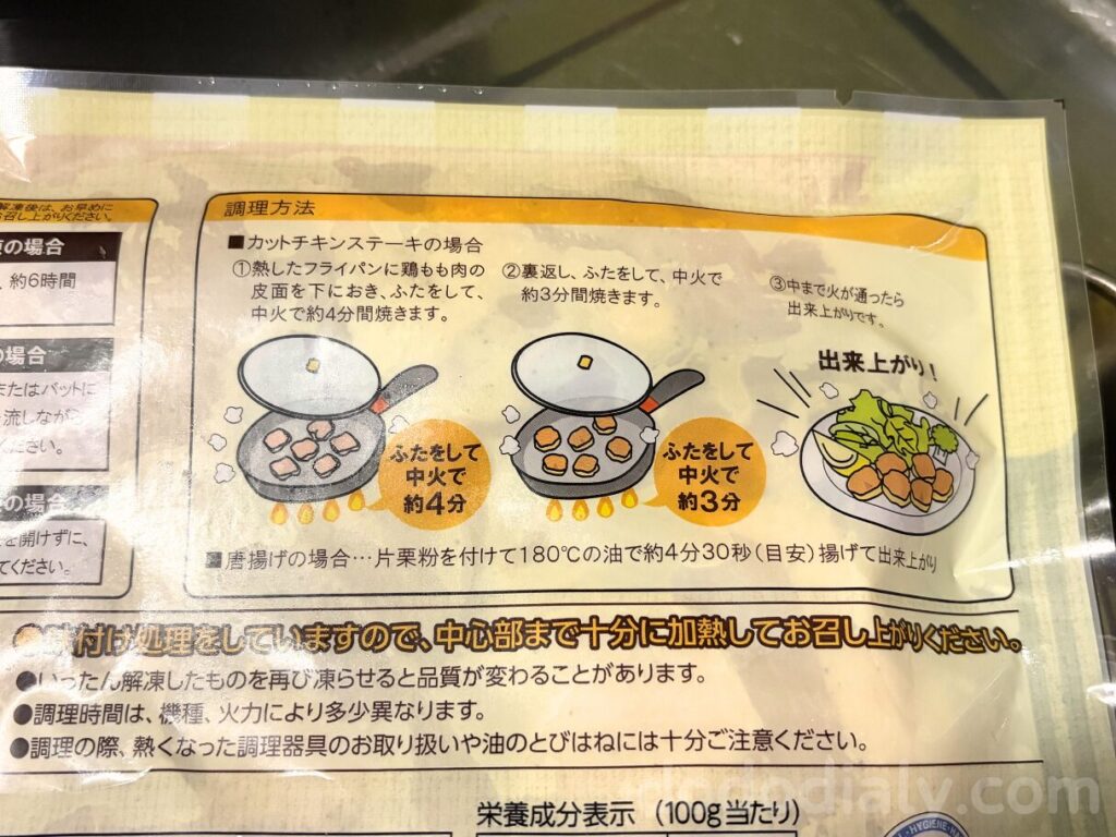 チキンステーキにも唐揚げにもなるすぐれもの。チキンステーキの作り方がイラスト付きで丁寧に書いてあります。